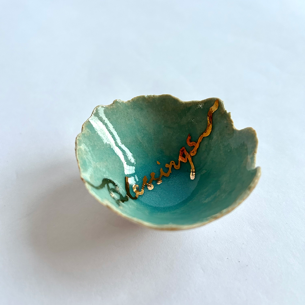 Every vessel I make is intended to draw your gaze to the interior. Here you will see the bright refreshing tones of clean, renewing water – an echo of the cleansing and washing that Jesus brings into a person’s life by His sacrifice for us.